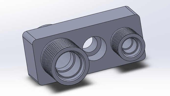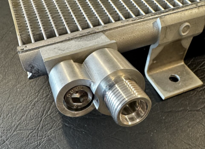 Fitting retention was converted from a stud/nut combination to a single hex cap screw in a recessed hole to avoid blocking the use of the threaded connections.