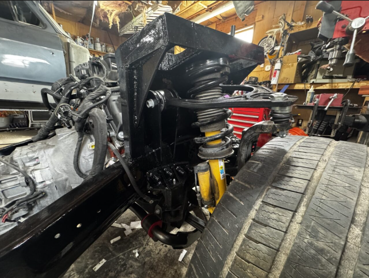 Custom structural components were designed and fabricated to support the modern suspension and drivetrain systems. These components include: