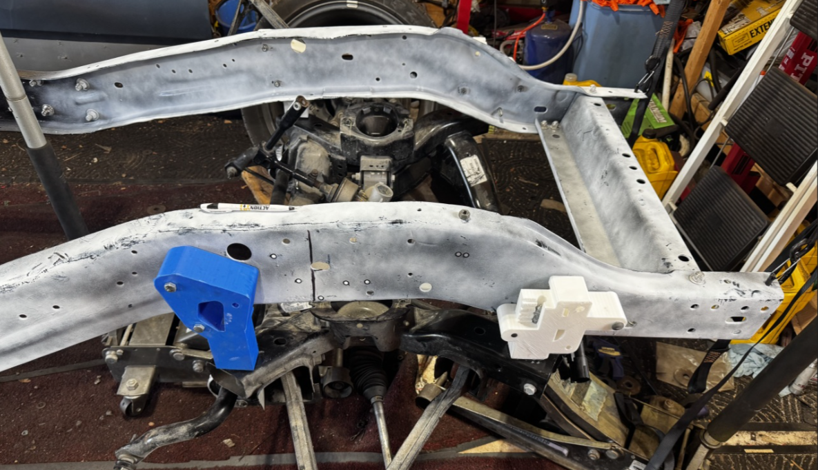 Beyond controlled measurement comparisons, the research was intentionally grounded in a real engineering application: the reverse engineering and integration of modern suspension and frame components from a Dodge Challenger into a legacy vehicle platform (1984 Dodge D150). The secondary application was a small-scale reverse engineering of plastic components to rotate a projector housing by 90 degrees, allowing a horizontal beam pattern after rotating the headlight assembly to the vertical configuration. Scanned geometry was used to generate CAD models that directly informed the design and fabrication of structural brackets and mounting interfaces, allowing scanner performance to be evaluated through physical fitment and installation, not solely numerical error metrics.