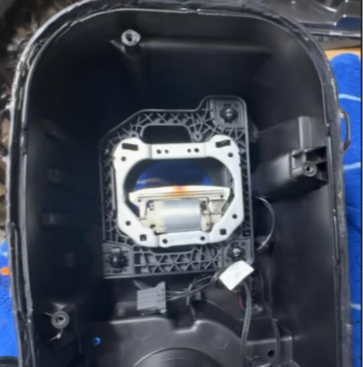 Figure (11) Old bracket (White), Correct beam pattern bracket (Black), Final Assembly